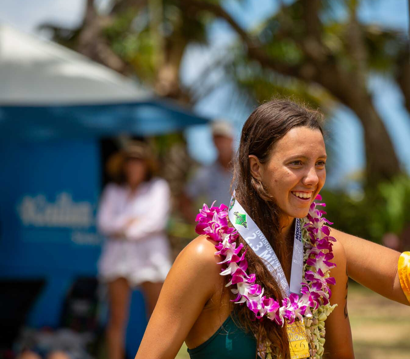 Yes, that’s correct! It is so awesome to come from a family that is so passionate about swimming in the ocean. My dad, John, taught me all I have to know. Whether it was practicing sighting or drafting in the pool with my club (Kamehameha Swim Club), or open water practice to train for open water races on the mainland, he always gave me something useful to know. And yes! I do experience friendly competition amongst my family. During the 2024 NSSS Summer Sprint, my sister and I were battling it out for number one female! She ended up beating me up on the beach, reminding me who was boss. This year, however, I was stoked to take the woman’s win, (but my sister Kai didn’t even do it!). I didn’t know how the race was going to end up like and who I was going to swim with, but it was such an awesome sprint, and it felt good to swim with some of the boys. My little cousins Isla and Saela also participated in some of the races this summer for the first time. They did so well! It is so cool to be able to finish my own race and then see my family cross the finish line as well.